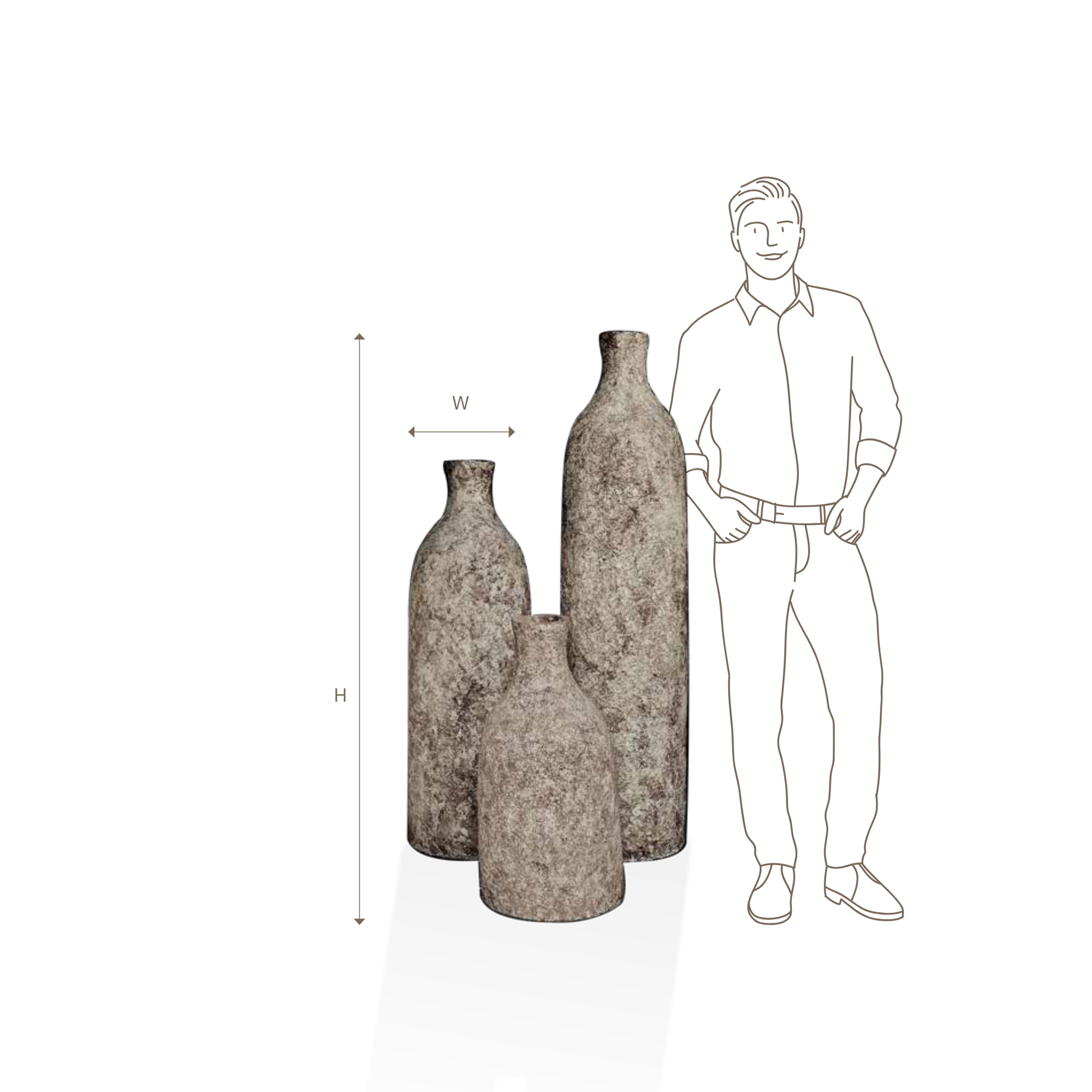Our tall Arista pots come in three different sizes and two different shades, and look incredible clustered together. These slender pots have a narrow mouth and a textured surface, which gives them an ancient feel, while their simple design makes them undeniably contemporary in style.