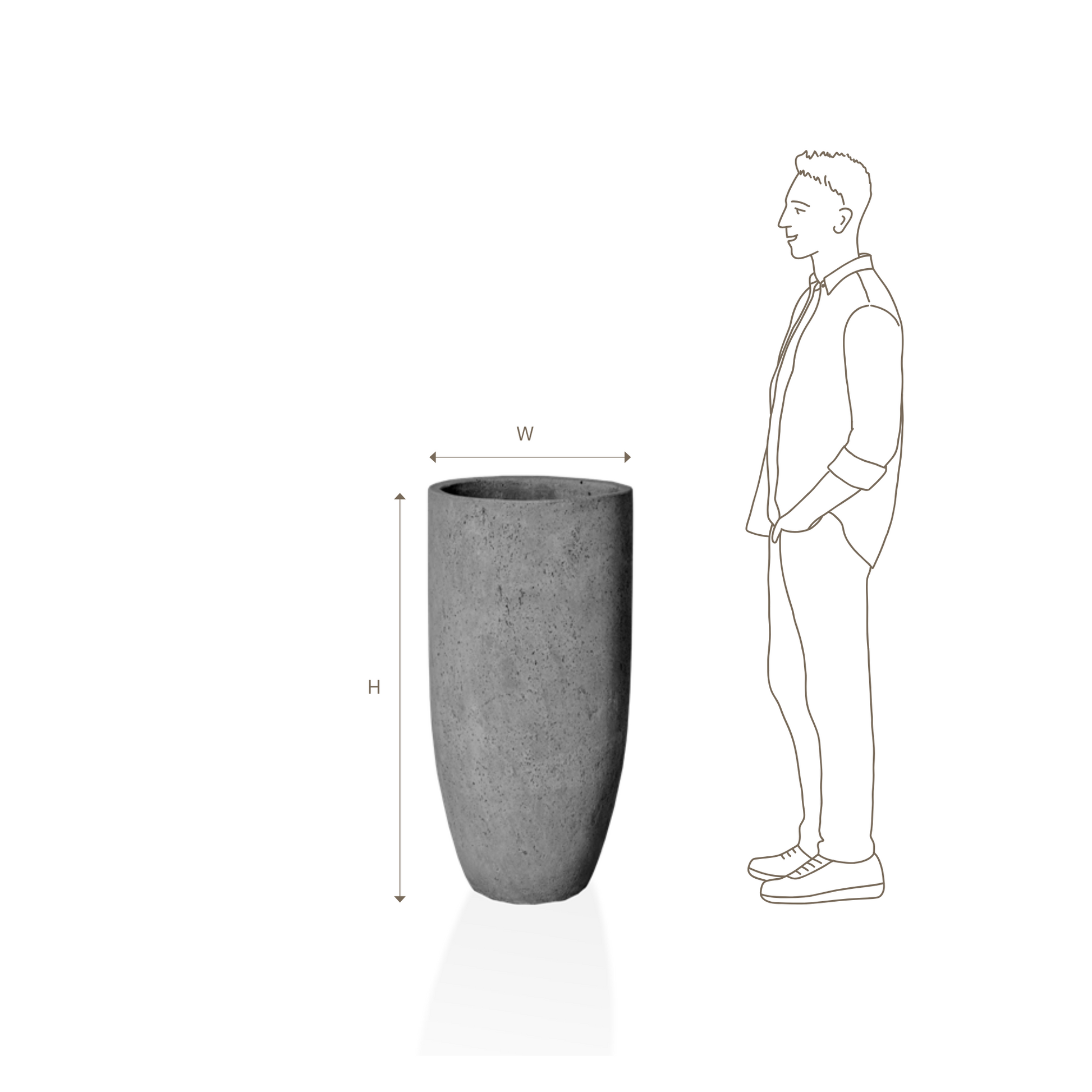 Our contemporary Celestia pot is available in a choice of two different sizes and four neutral shades. This tall pot with its tapered base, matte finish and clean, simple lines will make an impression wherever you place it.