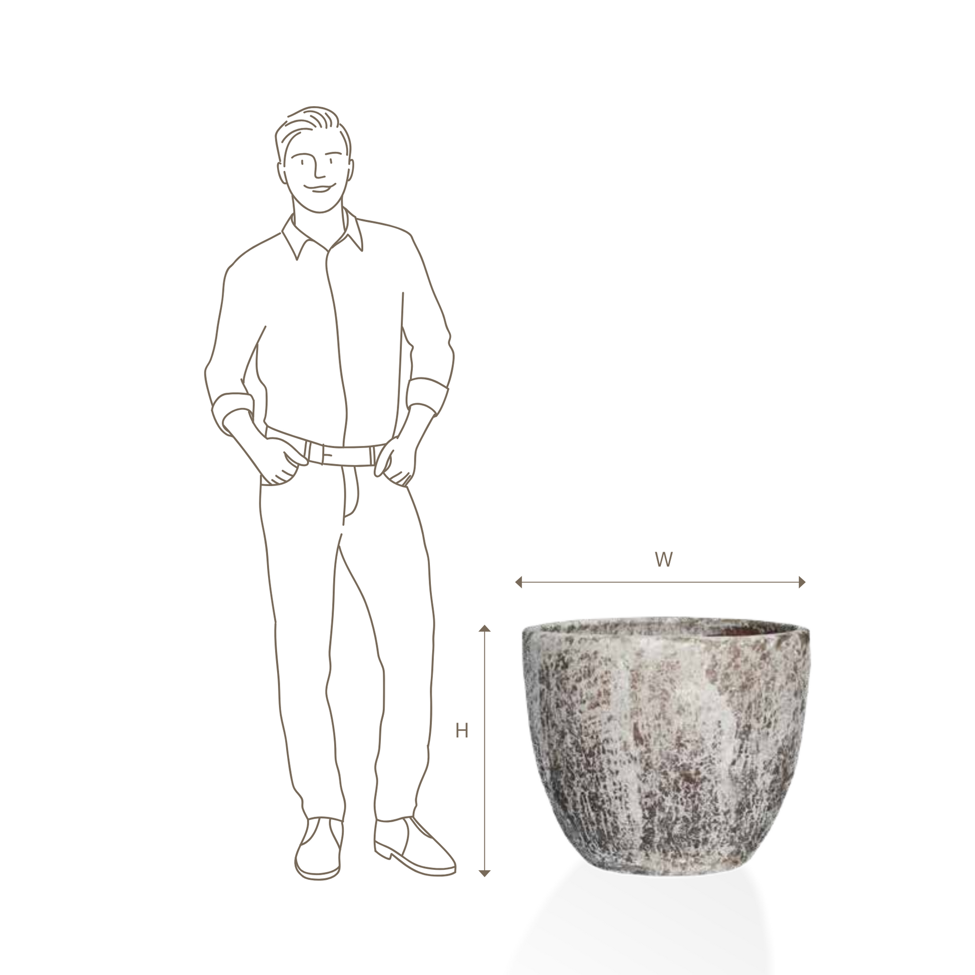 Our u-shaped Tempe pot is available in a variety of sizes, shades and a textured, speckled snakeskin or lime-washed finish. This rustic pot features a tapered base and clean, simple lines that will suit any home or garden.